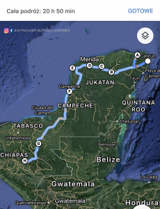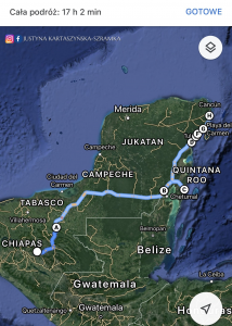 Jukatan – Campeche – Chiapas – Quintana Roo (podzielone na dwa zdj. ponieważ przekroczyliśmy maksymalną ilość przytankó w google maps)